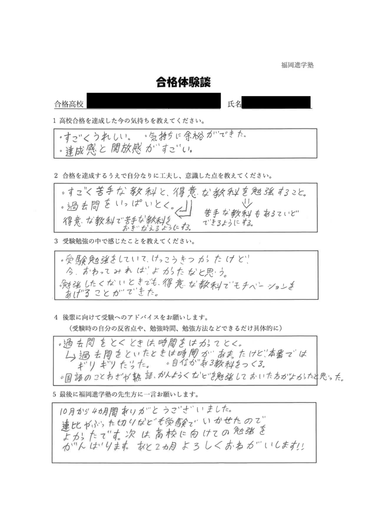 掲載されている合格体験談は、一部抜粋したものになり、すべての生徒の合格体験談を載せているわけではありません。