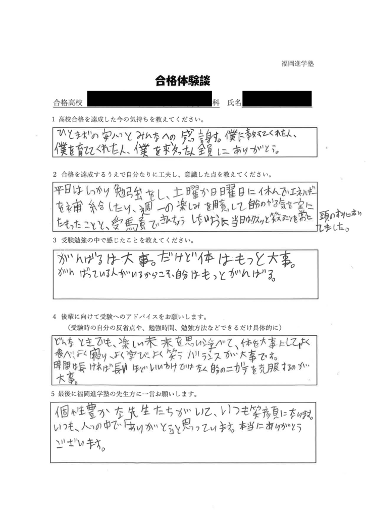 掲載されている合格体験談は、一部抜粋したものになり、すべての生徒の合格体験談を載せているわけではありません。
